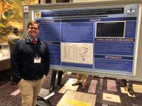 Dr. William M. Jackson standing with his poster “Children and Adults with Congenital Heart Disease Show No Difference in Scores on Measures of Behavior As Compared to Their Healthy Peers: A Systematic Review and Meta-Analysis.” Drs. Mohammad Sadat and Lena Sun co- authored the poster.